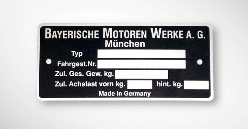 BMW VIN Plates - Reproductions Made in Germany